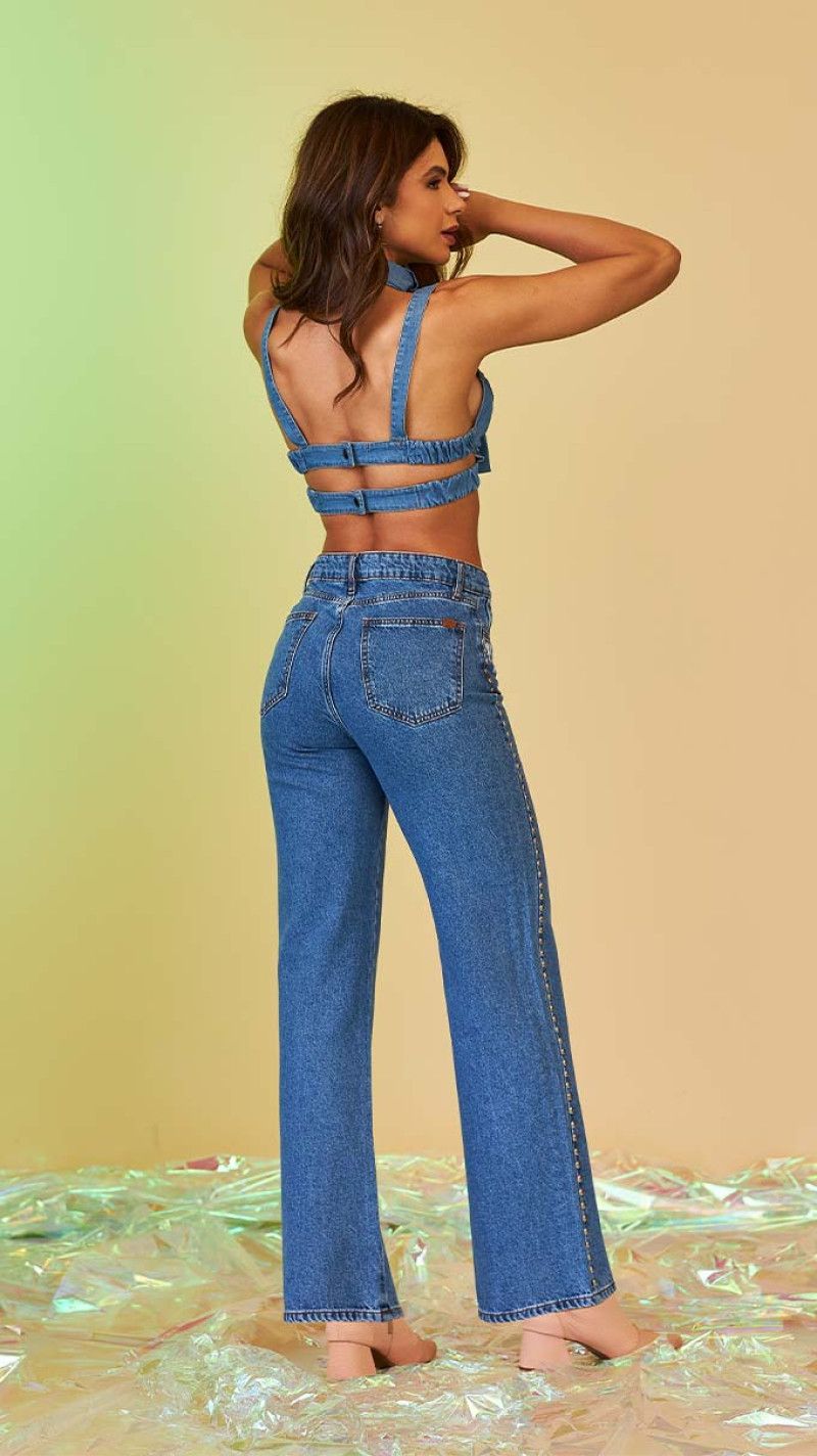 CALÇA WIDE LEG RIHANNA COM TACHAS