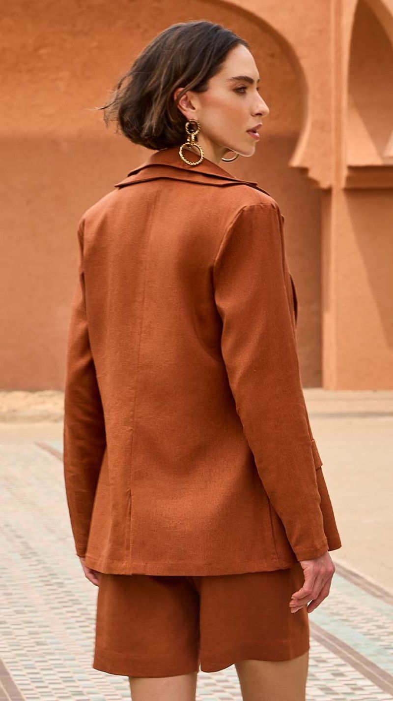 BLAZER com comprimento tradicional e produzido no linho, um modelo super estiloso perfeito para arrasar no looks mais elegantes, combina para as ocasiões tanto durante o dia quanto à noite.