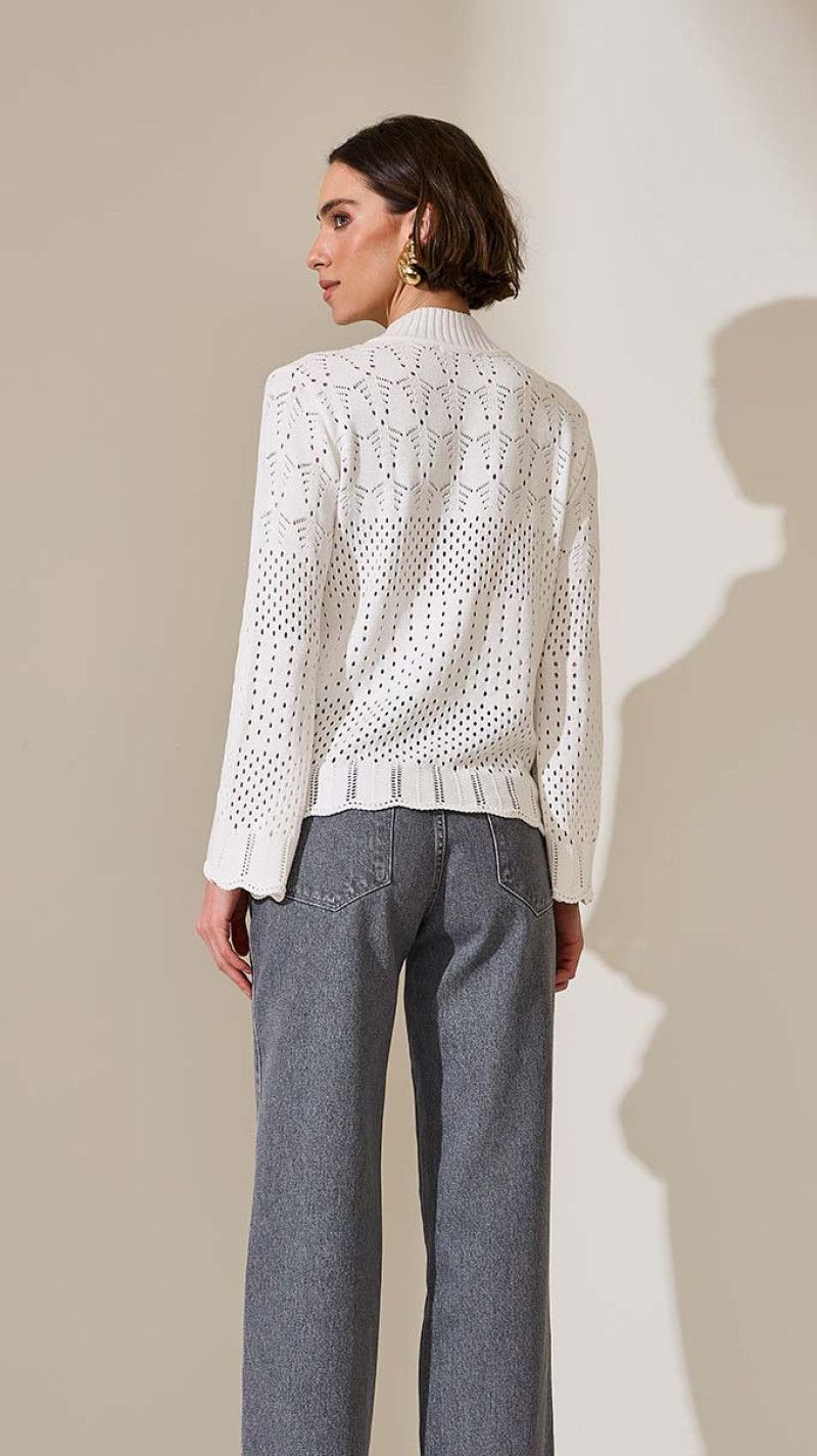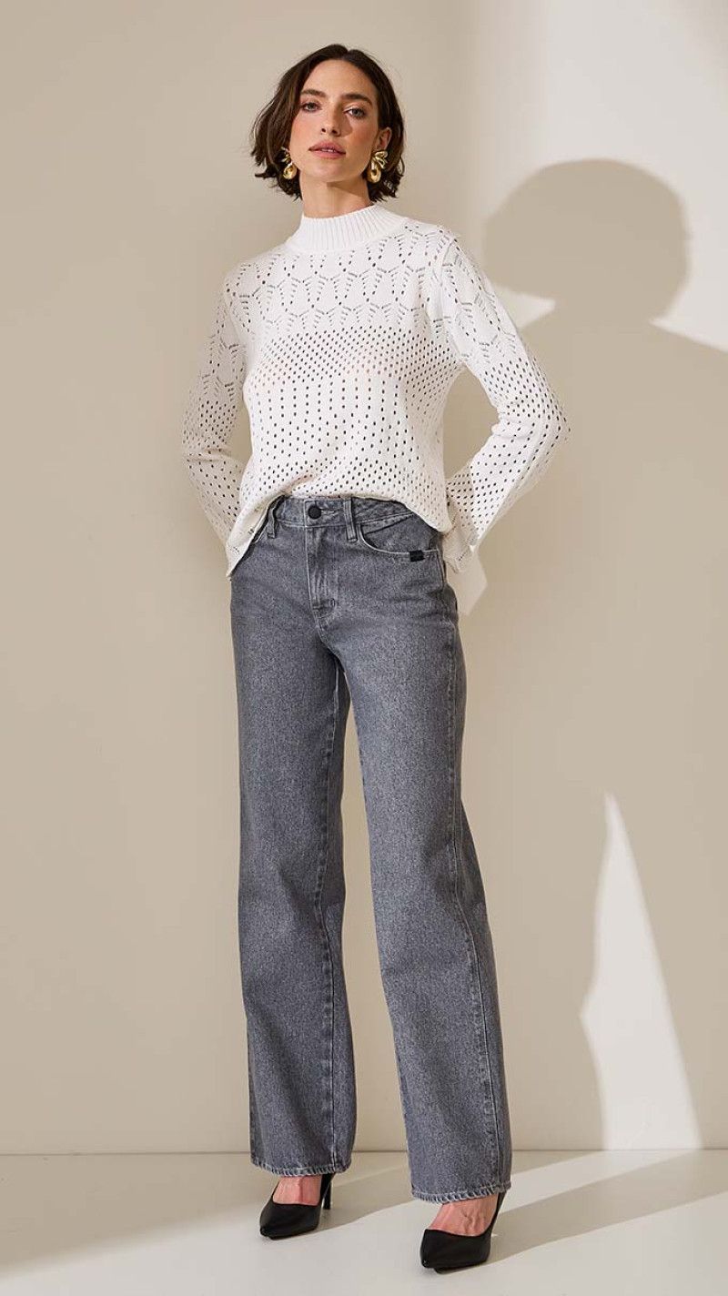 A peça perfeita para quem busca sofisticação e leveza no dia a dia. Com um design moderno e delicado, seu trabalho vazado traz um toque de charme e frescor, ideal para composições elegantes e despojadas. O modelo conta com gola alta canelada, mangas longas e um caimento confortável, proporcionando versatilidade para diferentes ocasiões. Combine com jeans, saias ou alfaiataria para um look cheio de estilo!