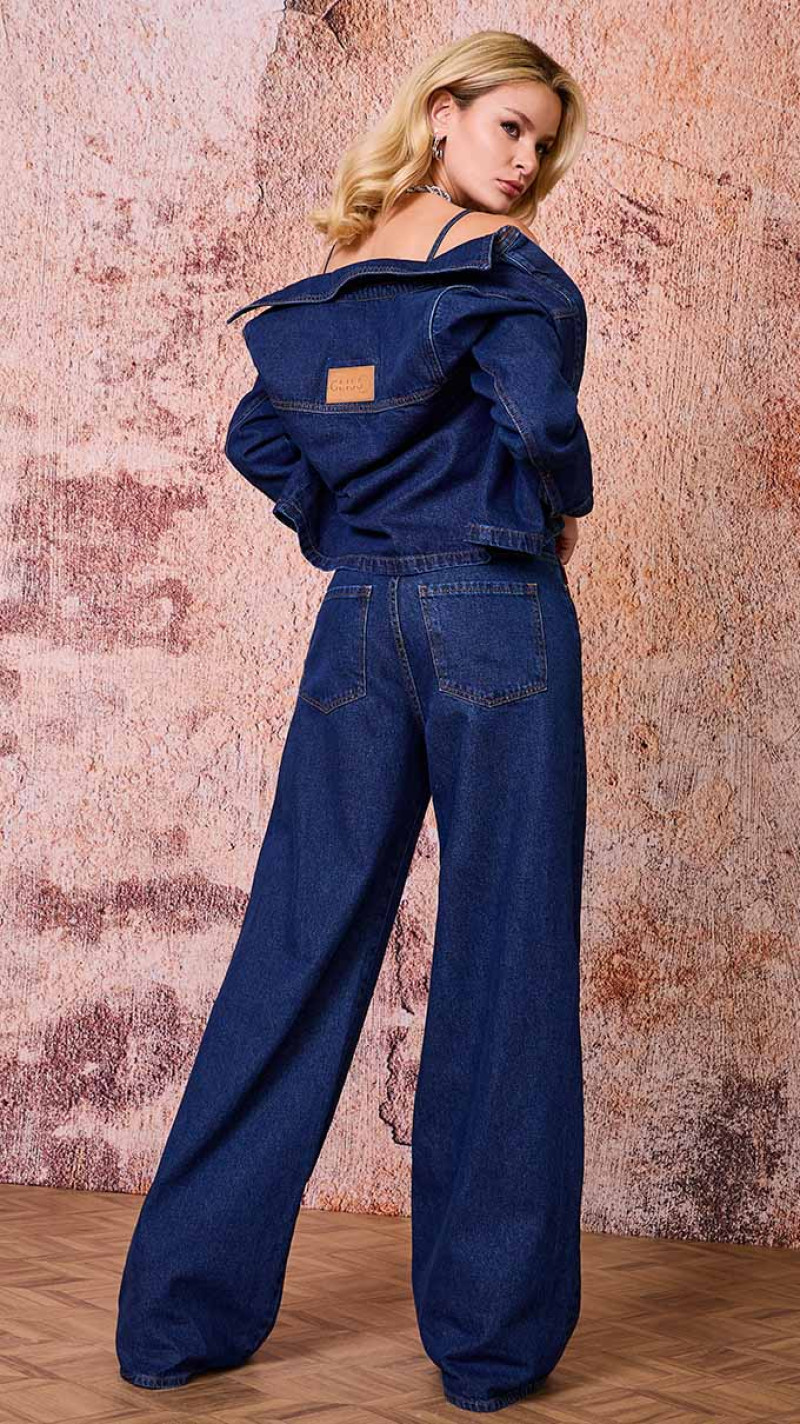A calça maxi wide é a escolha certa para quem gosta de uma silhueta marcante e cheia de personalidade. A cintura estruturada define o encaixe no corpo, enquanto as pernas amplas criam movimento e alongam o visual com naturalidade. O shape mais aberto traz impacto sem perder versatilidade, funcionando tanto em produções mais ajustadas quanto em combinações modernas e descomplicadas.