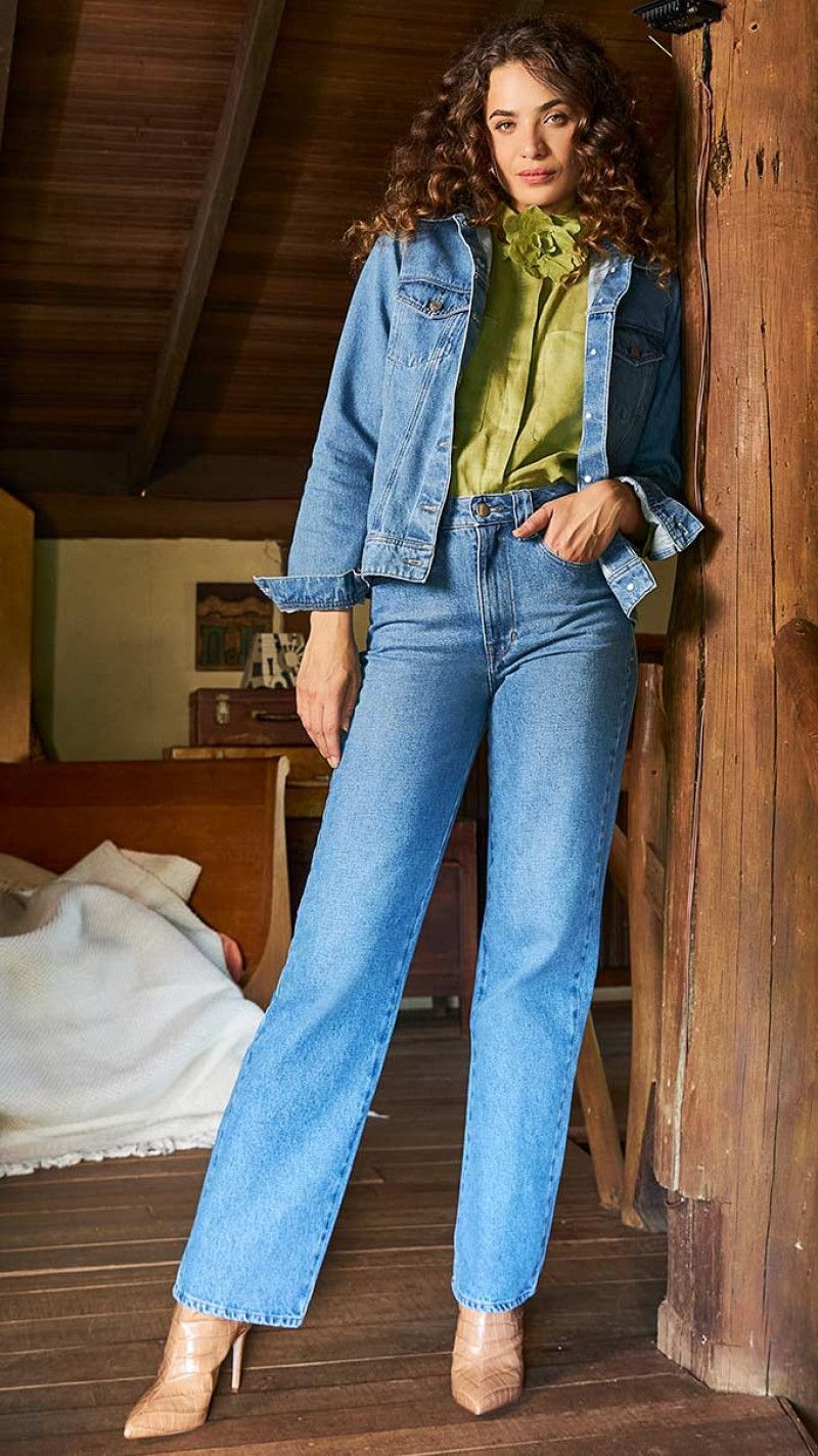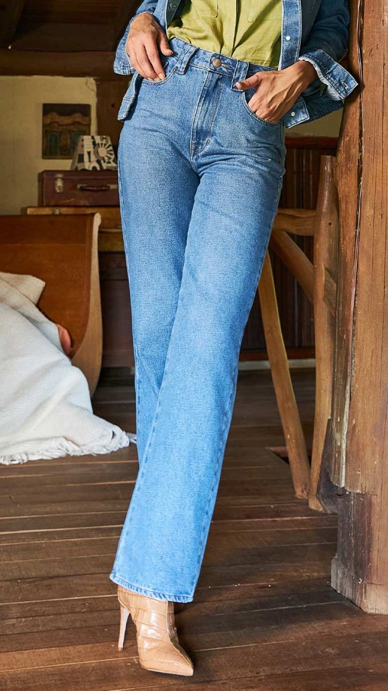 A Calça Jeans Wide Leg Rihanna é a peça ideal para quem busca um jeans básico mas com qualidade em cada detalhe. Com modelagem confortável, detalhes modernos e versatilidade.