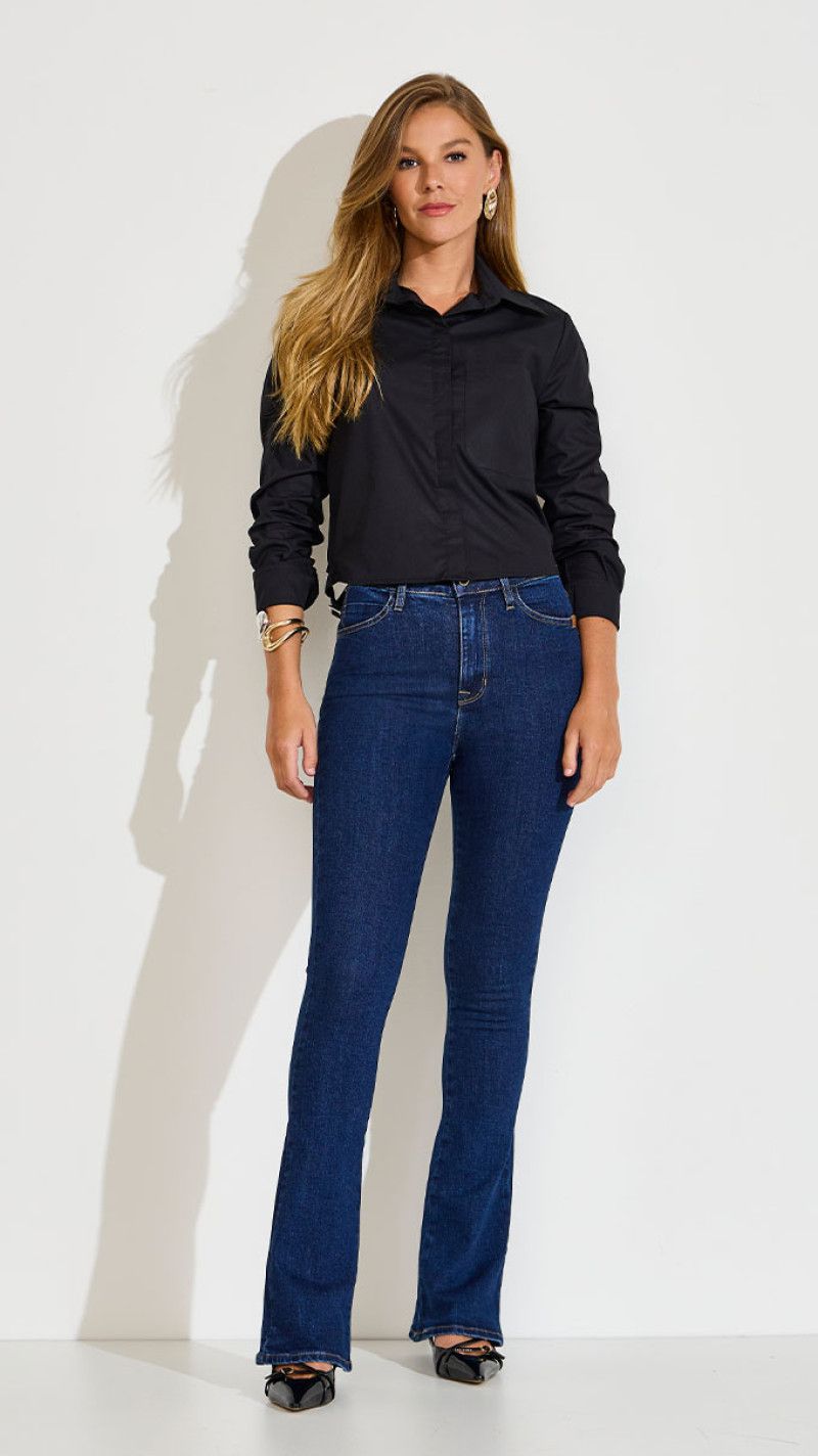 A Calça Jeans Flare redefine o conceito de sofisticação. Com modelagem que valoriza a silhueta, cintura alta e caimento impecável, essa peça é a chave para looks modernos e elegantes.