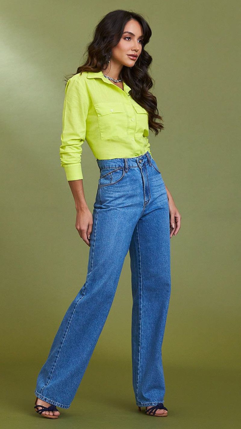 CALÇA JEANS FEMININA WIDE LEG - GLISS