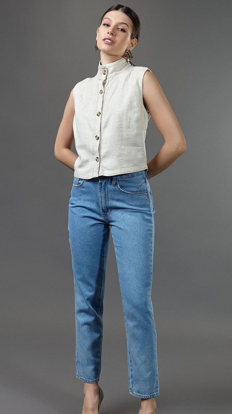 "O essencial com um toque de elegância nosso modelo atemporal, confeccionada com tecido 100% algodão proporcionando um toque incrivelmente confortável e uma modelagem impecável. Versátil e estilosa, esta peça combina perfeitamente com várias opções de parte de cima e uma sandália elegante. A sua versatilidade e design clean são a base perfeita para criar looks que refletem seu estilo único.