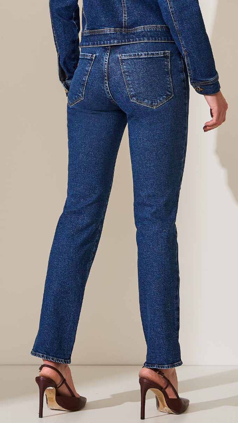 CALÇA JEANS RETA ESCURA ABERTURA LATERAL