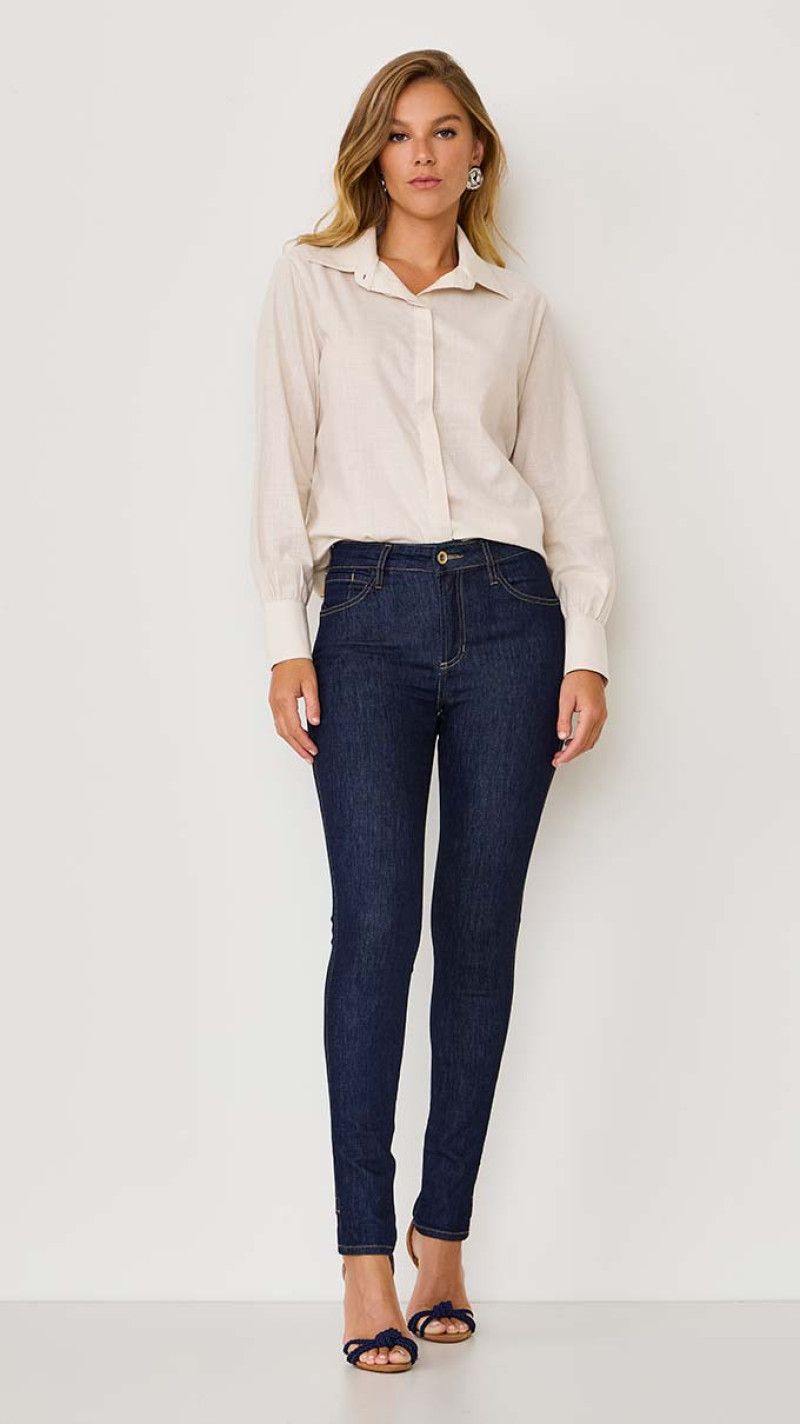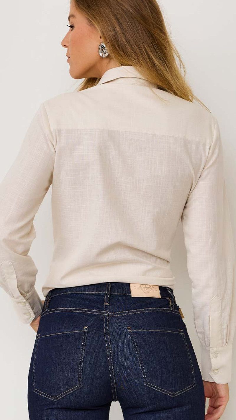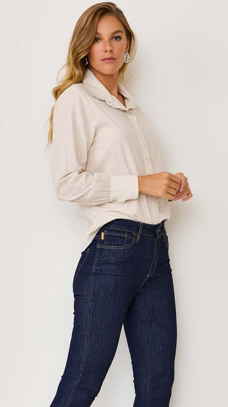 CAMISA MANGA LONGA ABOTOAMENTO OCULTO BEGE