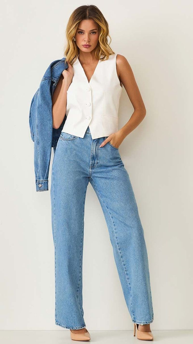 A calça wide leg com detalhe no bolso é uma peça moderna e estilosa que combina o conforto do corte amplo com um toque de originalidade nos detalhes. O corte wide leg é amplo e reto desde o quadril até a barra, proporcionando um visual fluido e alongado. É ideal para quem busca conforto e um look moderno.