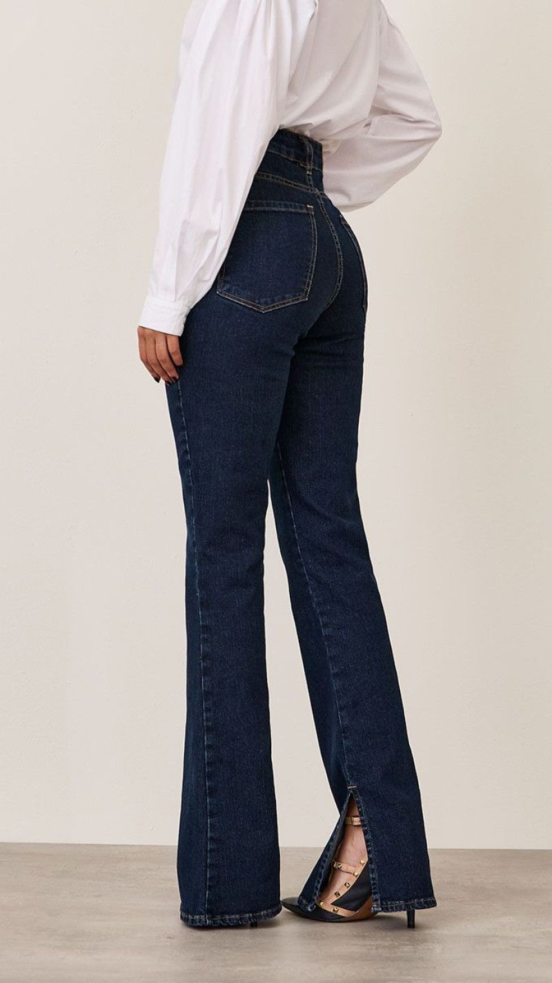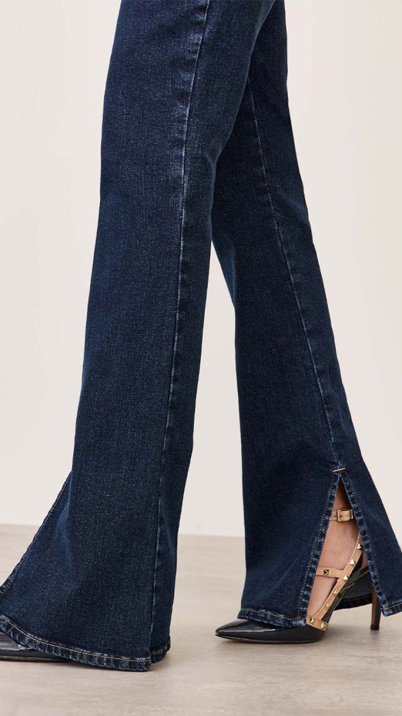 A calça flare traz uma proposta marcante com ajuste ao corpo e abertura estratégica na barra, que alonga a silhueta e adiciona movimento ao caminhar. A fenda dá um toque moderno e atual ao clássico modelo, enquanto a estrutura da cintura garante encaixe seguro e confortável. Uma peça que une atitude e versatilidade para composições que vão do casual ao mais sofisticado com facilidade.