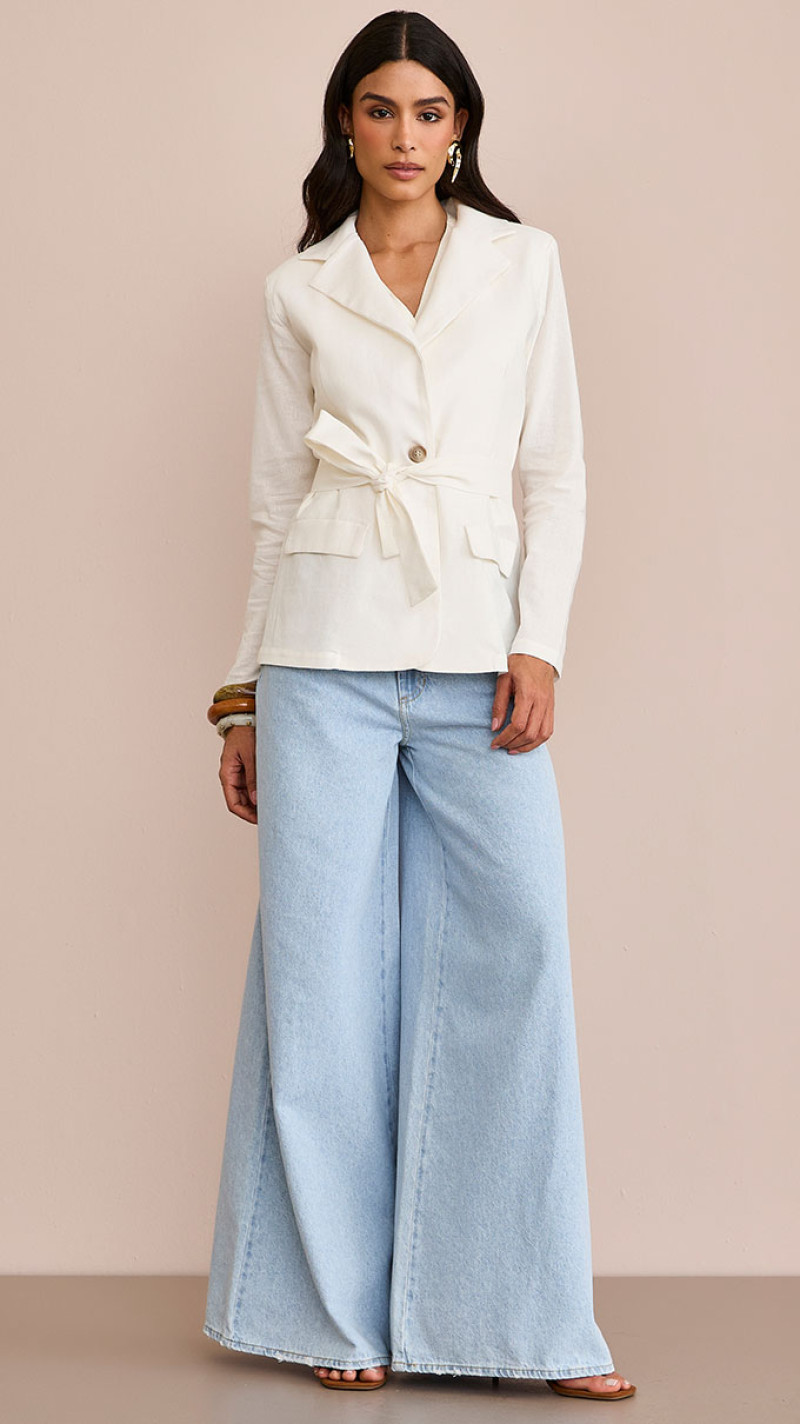 - Modelagem pantalona com caimento amplo