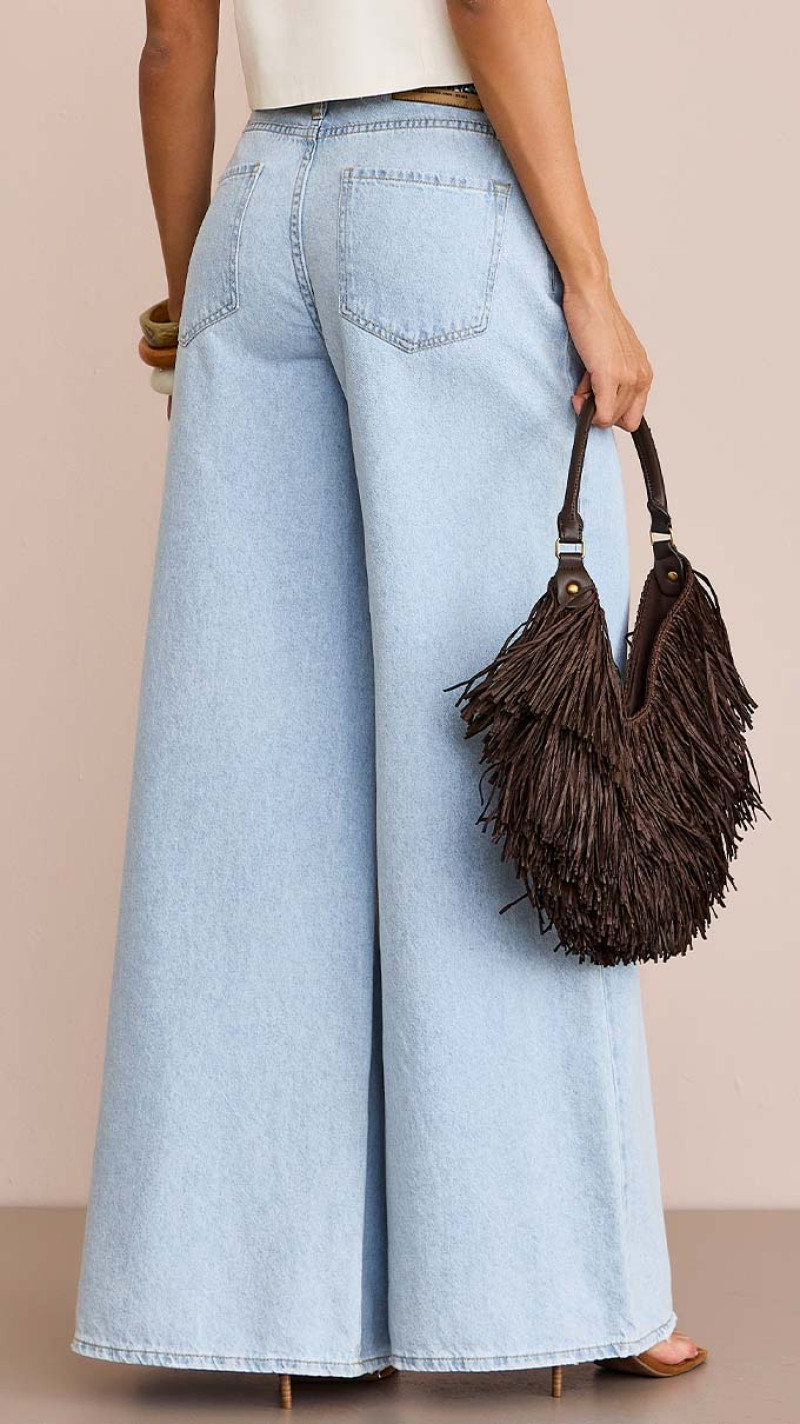Com visual marcante e proporção elegante, a peça aposta na modelagem pantalona para criar um caimento amplo e fluido. O design valoriza a silhueta com cintura estruturada e pernas mais abertas, trazendo movimento ao vestir. Os bolsos clássicos e os pespontos reforçam a estética do denim, resultando em um jeans versátil que combina presença e estilo.