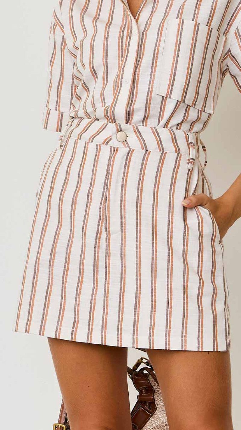 O short saia listrado chega com aquele toque moderno que eleva qualquer produção. A alfaiataria leve cria uma aparência arrumada sem perder a praticidade, enquanto as listras verticais adicionam frescor e alongam o visual, tornando o modelo versátil para diferentes momentos do dia.