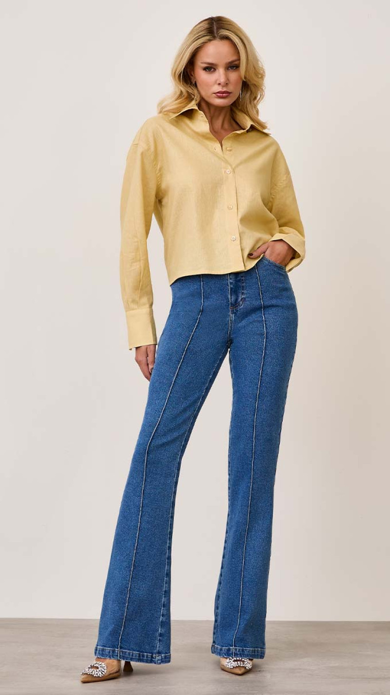 CALÇA JEANS FLARE COM FRISO