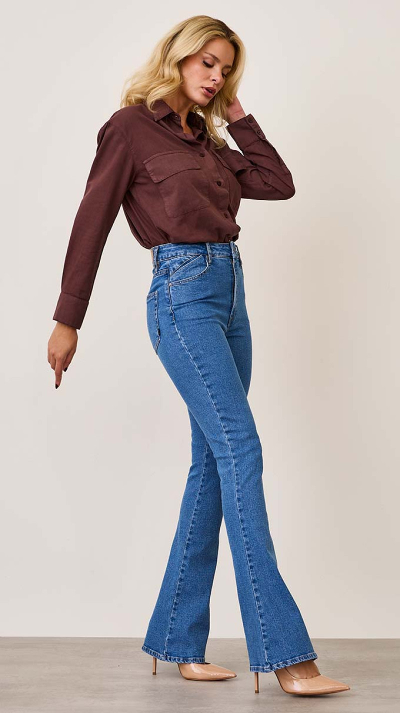 A calça flare valoriza a silhueta com um caimento ajustado até o joelho e abertura suave na barra, criando um efeito alongador elegante. O detalhe diferenciado no bolso relógio traz personalidade ao clássico jeans, enquanto a estrutura da cintura garante encaixe seguro e confortável. Uma peça versátil que equilibra atitude e feminilidade na medida certa.