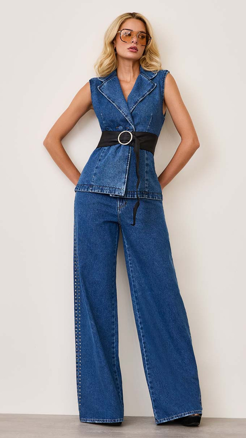 Calça com aplicação de termocolante de TACHAS, lindíssima e combina perfeitamente com looks para a noite.