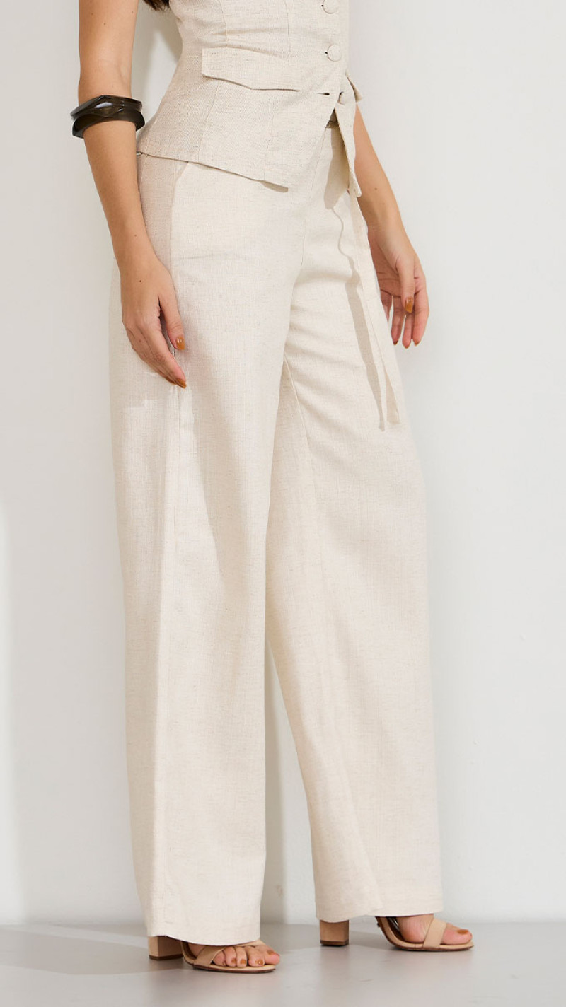 A calça pantalona de linho é perfeita para você criar looks práticos e confortáveis para usar no dia a dia, sendo uma verdadeira peça curinga.