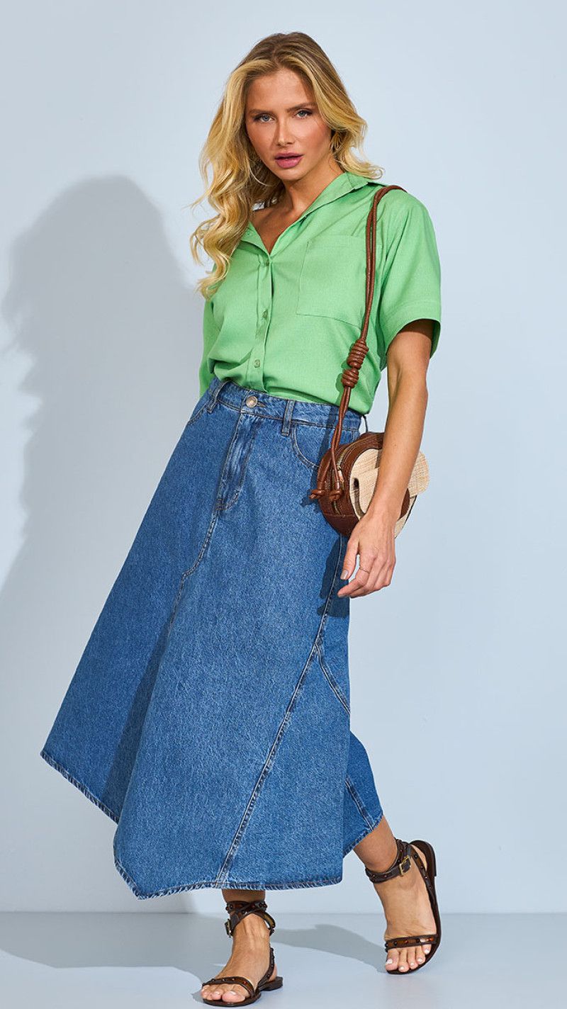 A Saia Midi Assimétrica é a escolha perfeita para quem deseja um toque moderno e ousado no guarda-roupa. Com seu design inovador e elegante, essa saia midi é ideal para transformar qualquer look e destacar sua personalidade única.