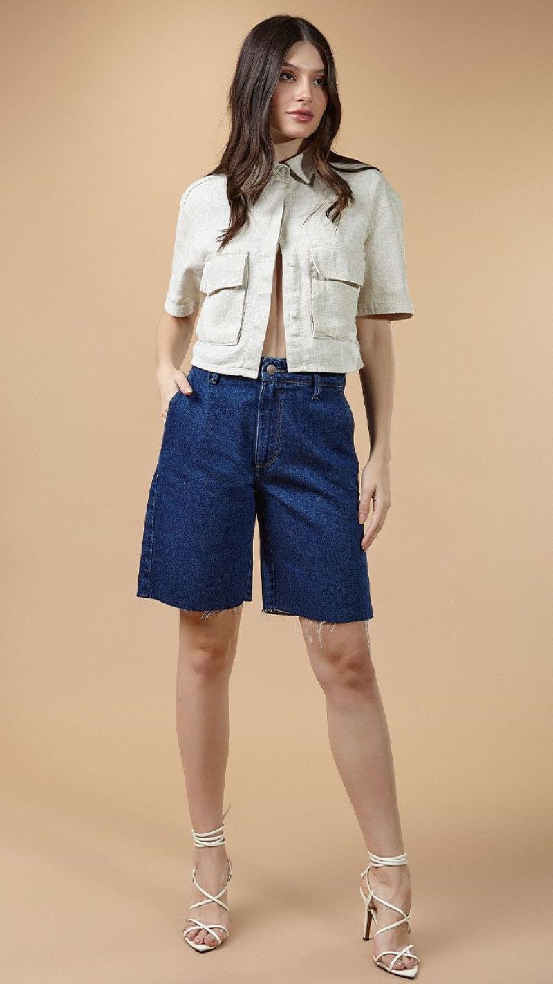 Descubra a harmonia entre descontração e elegância com a nossa jorts. Esta peça versátil é a escolha definitiva para os dias de sol, destacando-se como a tendência da temporada. Una o melhor do estilo e da comodidade, pronta para se destacar em qualquer ocasião!