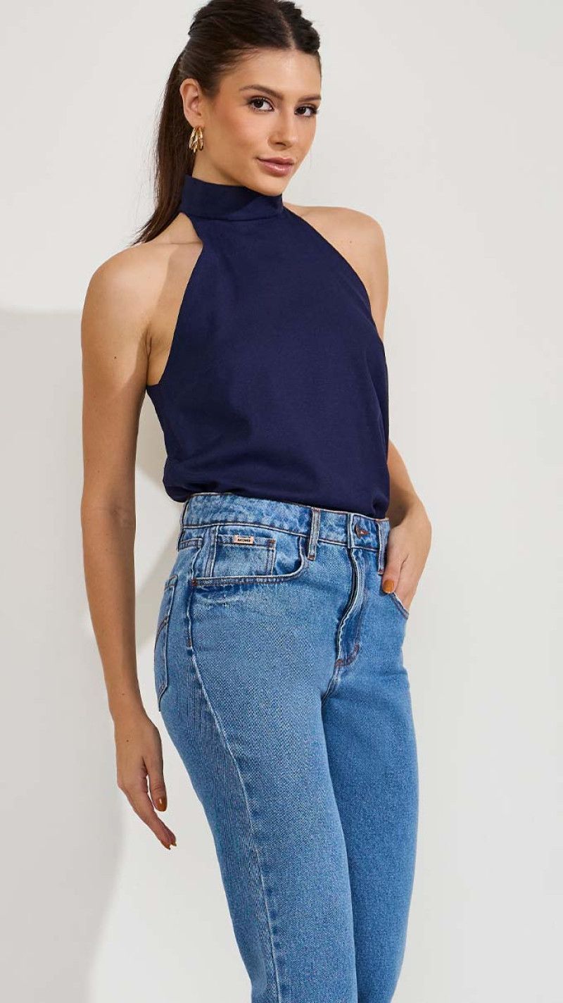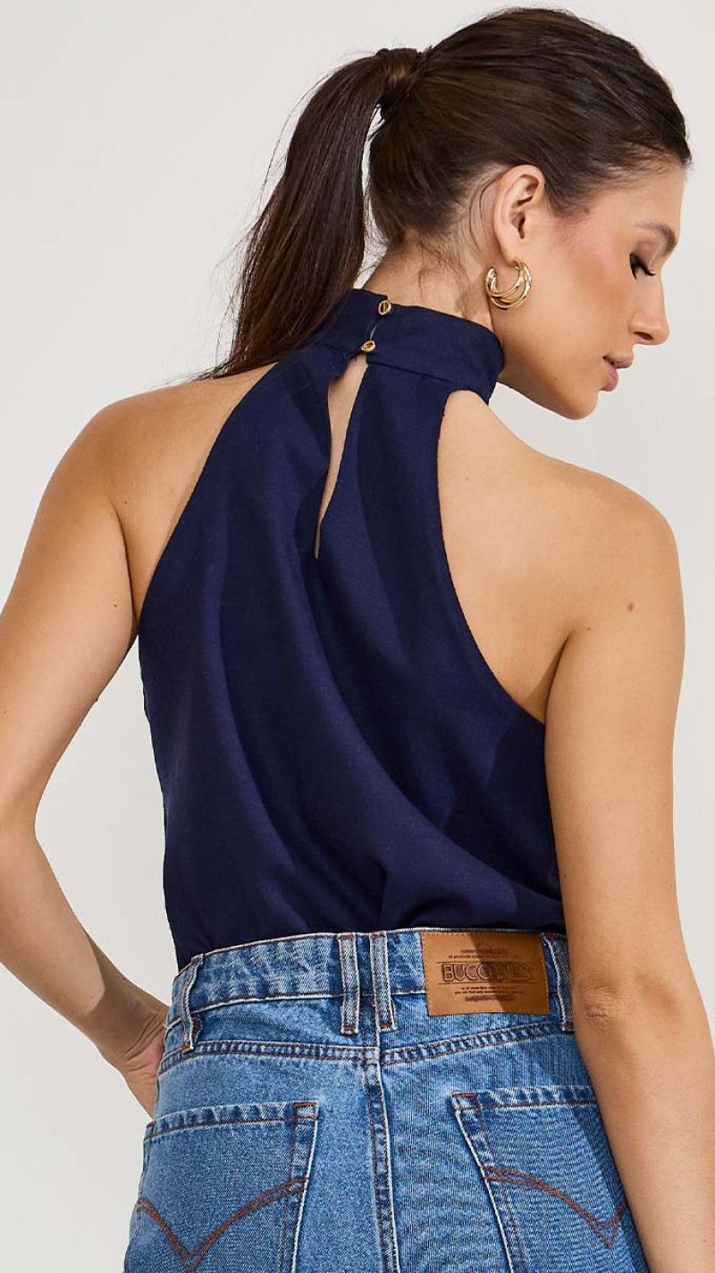 BLUSA GOLA ALTA ELEGANCE AZUL