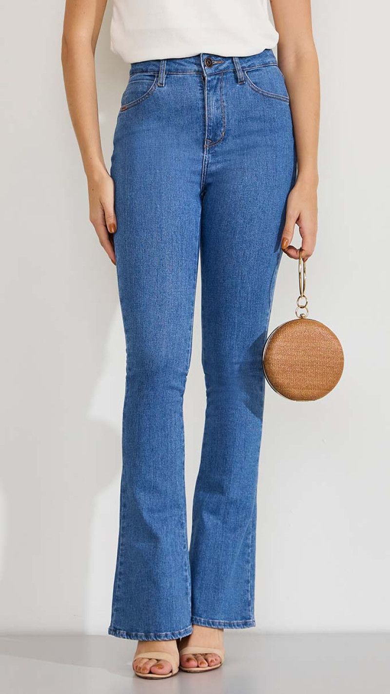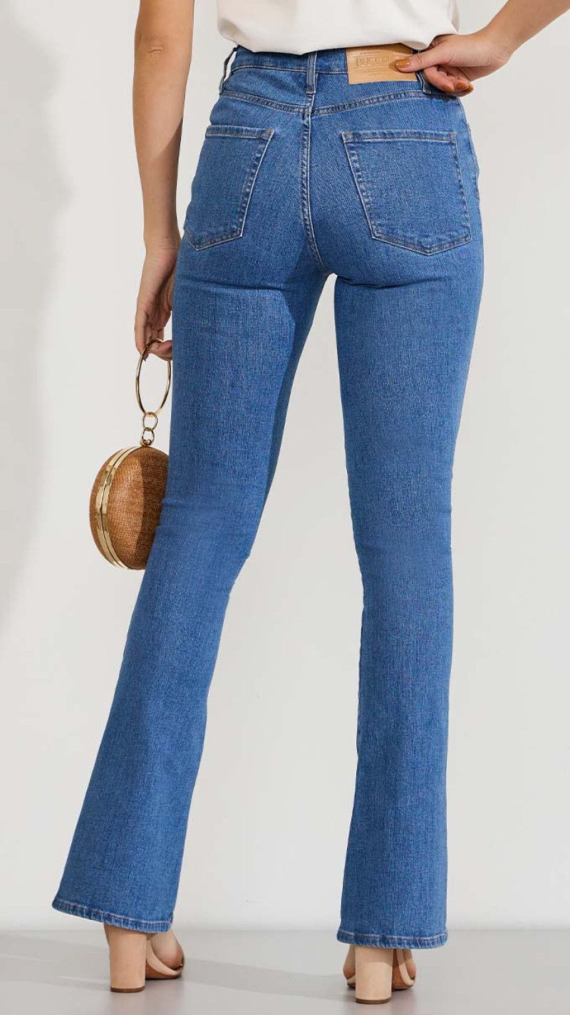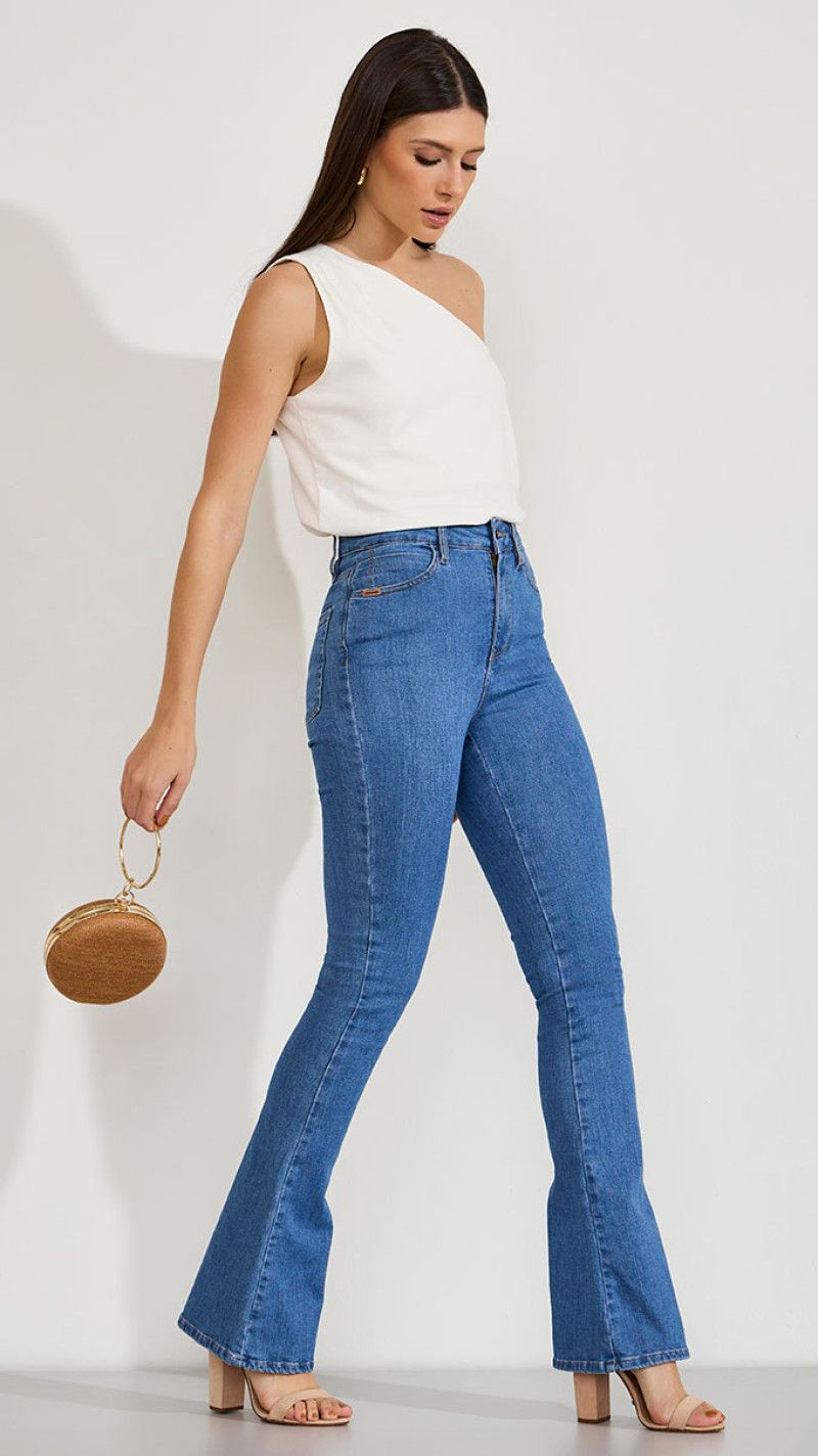 A flare é aquele tipo de peça que transforma o visual sem esforço: alonga a silhueta, equilibra as proporções e traz uma presença marcante que funciona do casual ao sofisticado. O tom do denim deixa tudo ainda mais versátil, perfeito para quem gosta de uma produção atual e com personalidade.