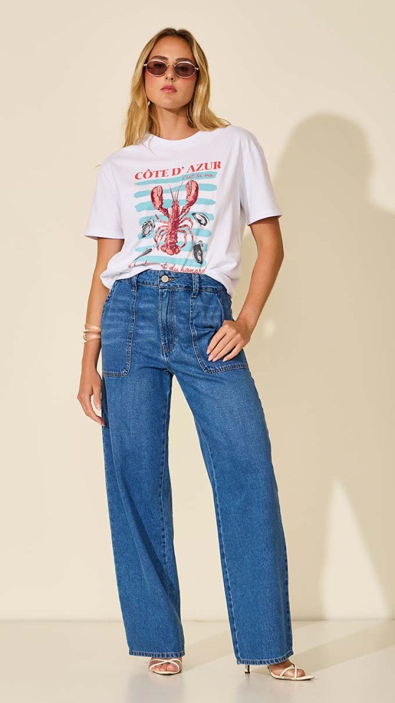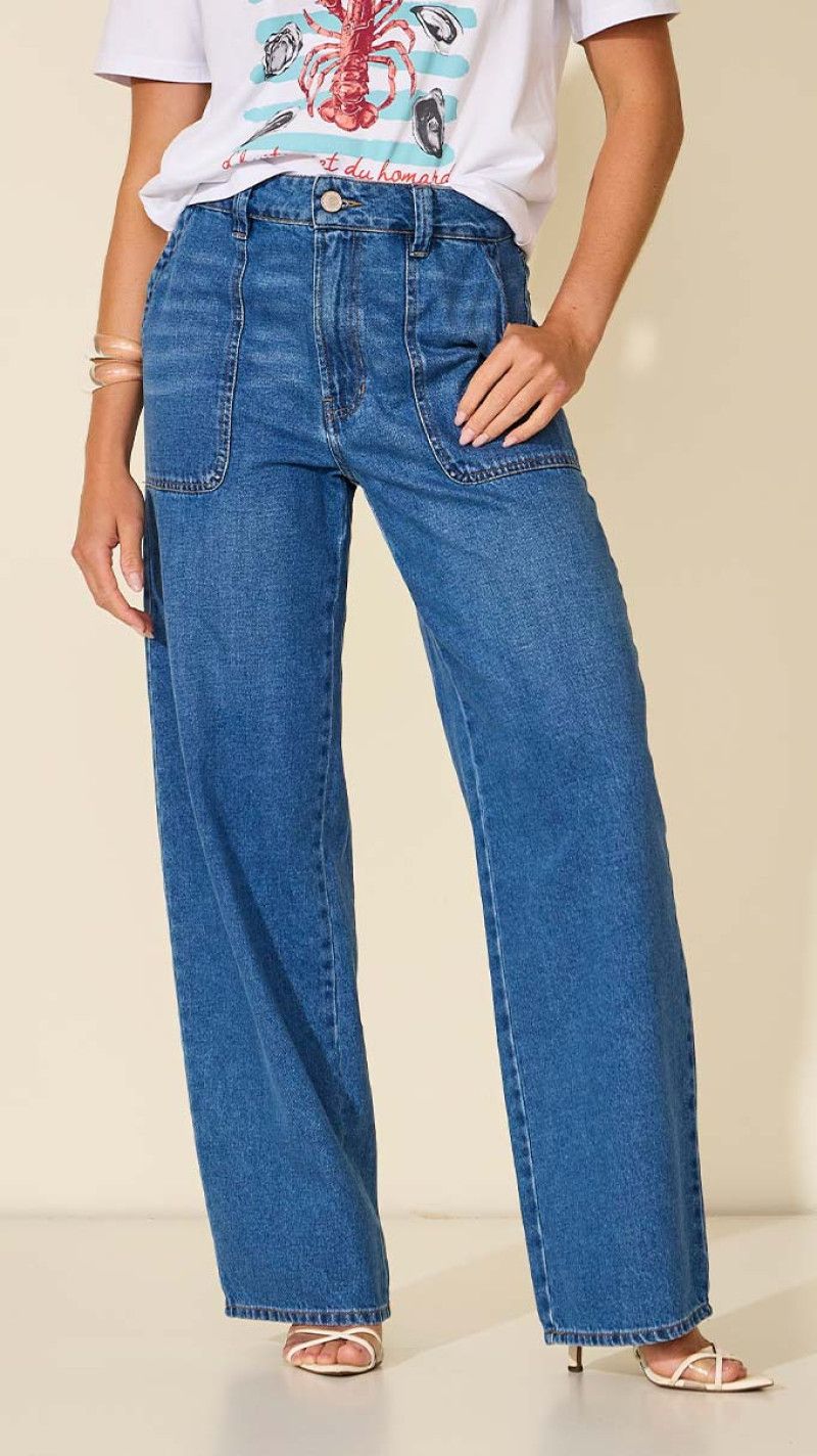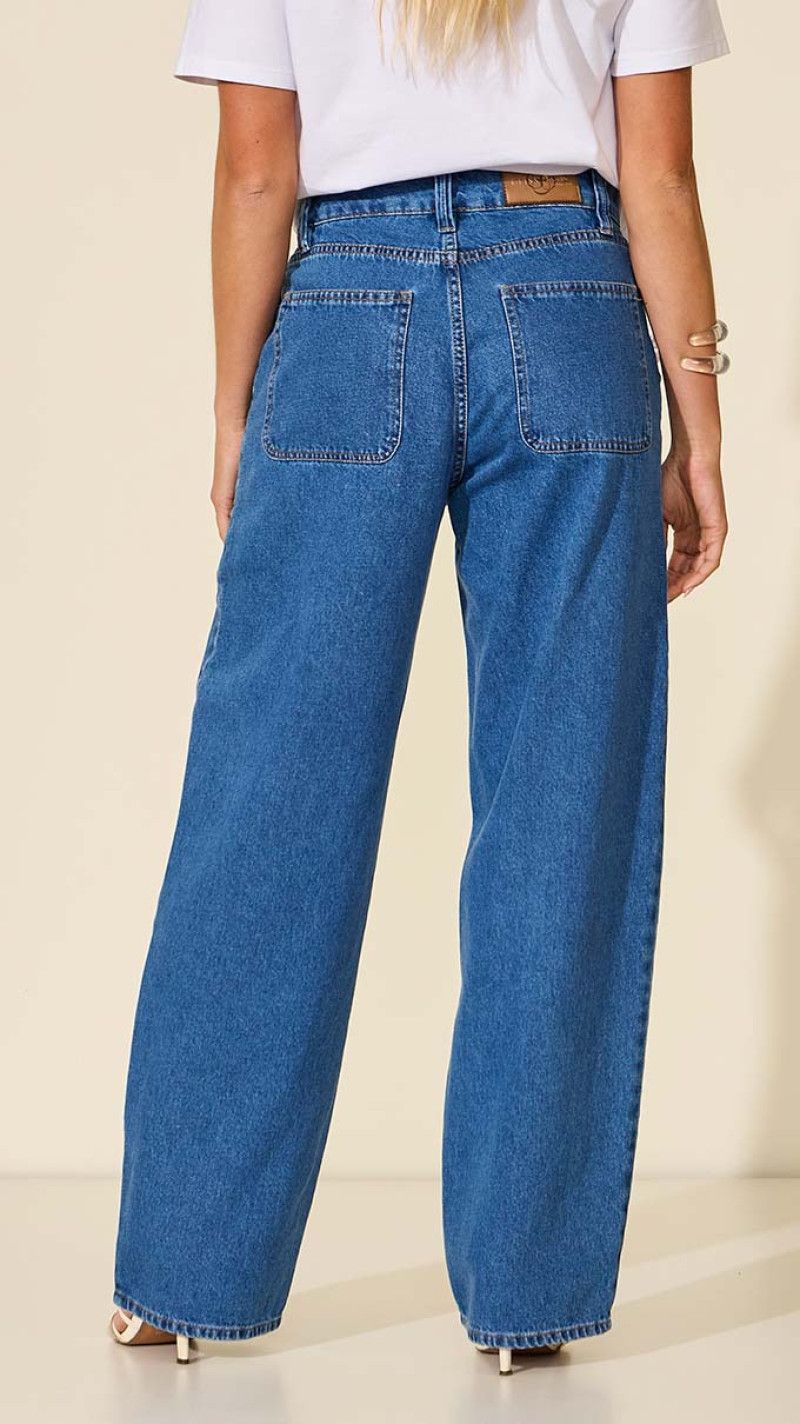 Modelagem ampla e moderna, perfeita para quem busca conforto sem abrir mão do estilo. Com cintura média e caimento solto, valoriza a silhueta de forma leve e contemporânea. O tom médio confere um visual versátil, fácil de combinar em produções casuais ou urbanas. Ideal para compor looks autênticos com um toque de sofisticação descontraída.