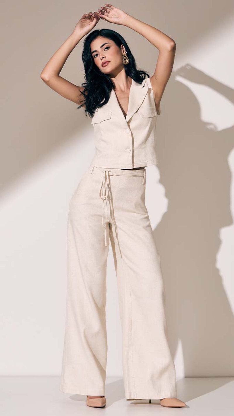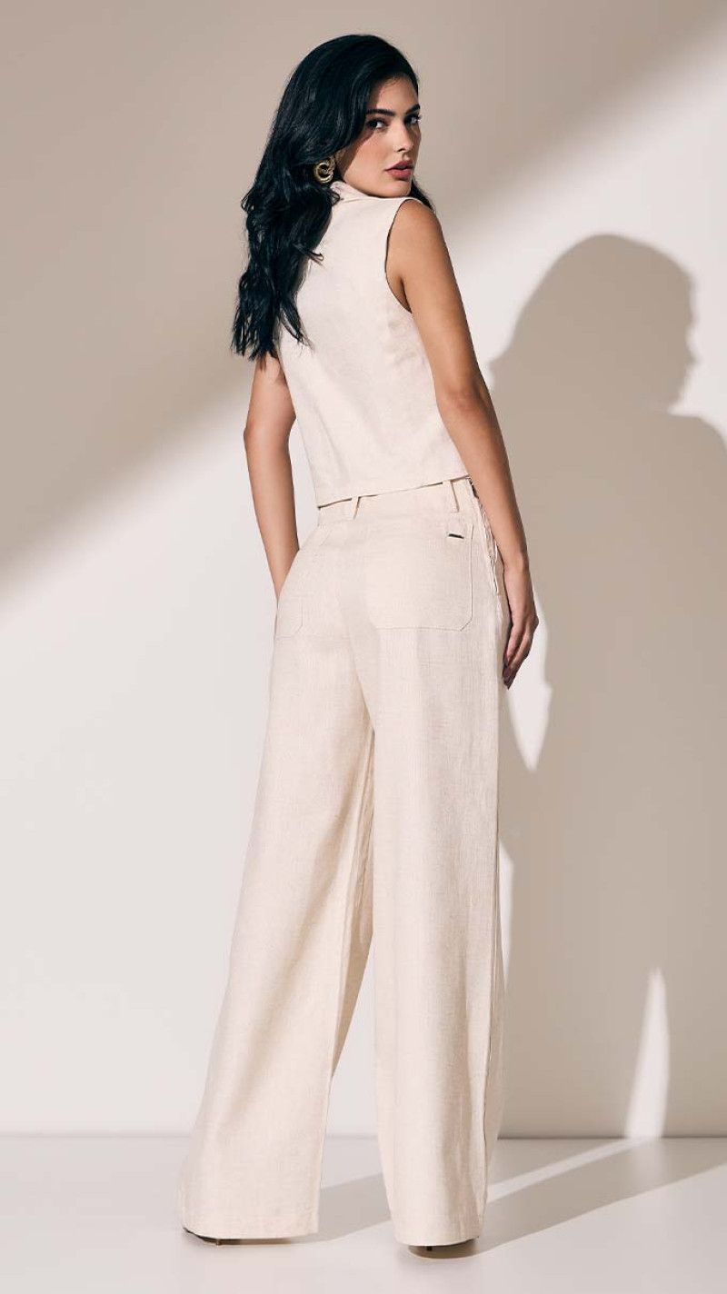 calça pantalona de linho é perfeita para você criar looks práticos e confortáveis para usar no dia a dia, sendo uma verdadeira peça curinga.