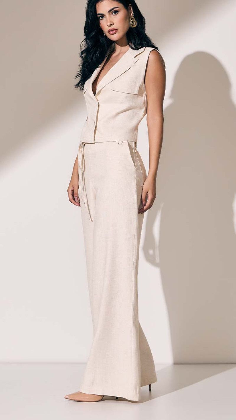 CALÇA PANTALONA DE LINHO COM CINTO - GLISS