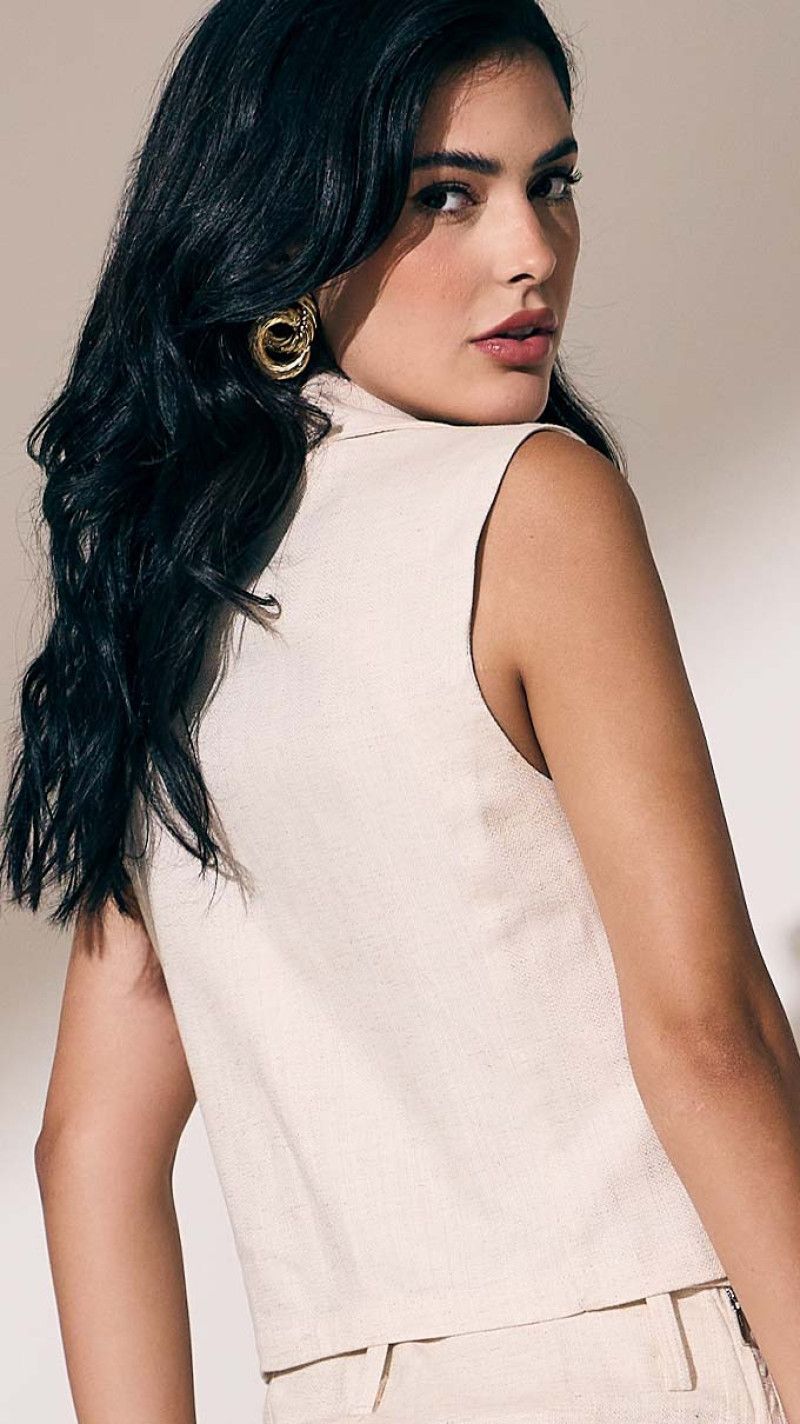 Adicione um toque de elegância atemporal ao seu guarda-roupa com este colete de linho. Perfeito para os dias mais quentes, o colete apresenta um design clássico com gola lapela e fechamento frontal por botões, oferecendo um visual sofisticado e versátil. Seu tecido de linho leve e respirável proporciona conforto e frescor, combine-o com calças de alfaiataria para um look formal impecável ou com jeans e camisetas para um estilo casual chic.