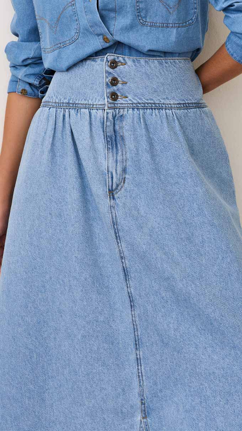 A saia longa combina fluidez e estrutura em uma proposta que valoriza a silhueta com naturalidade. O cós mais alto define a cintura e cria um encaixe seguro, enquanto o leve franzido traz movimento e leveza ao caimento. A abertura frontal adiciona um toque moderno e facilita o caminhar, tornando a peça versátil para produções que vão do casual ao mais elaborado com facilidade.